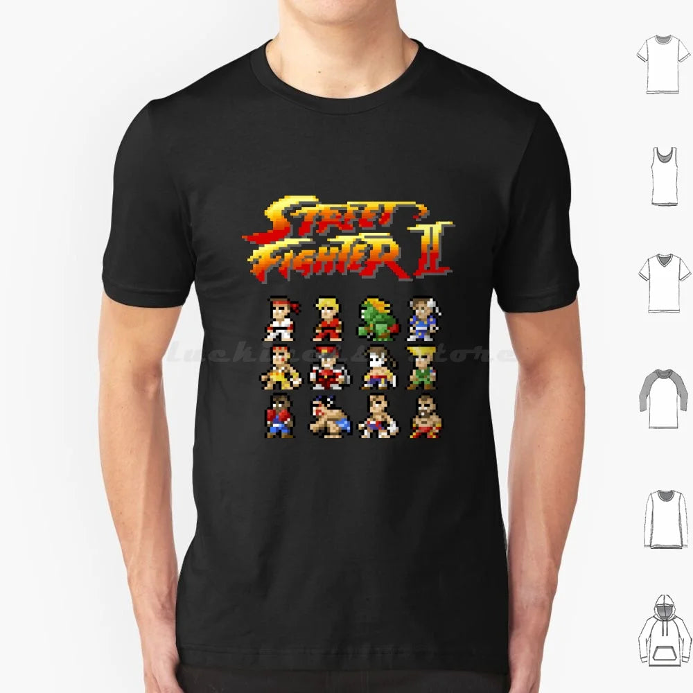 2 Characters Pixel Art T Shirt 6xl Cotton Cool Tee 2 Ii Blanka Ryu Ken Chun Li Sagat Balrog Dalshim Bison Vega Guile Zangief