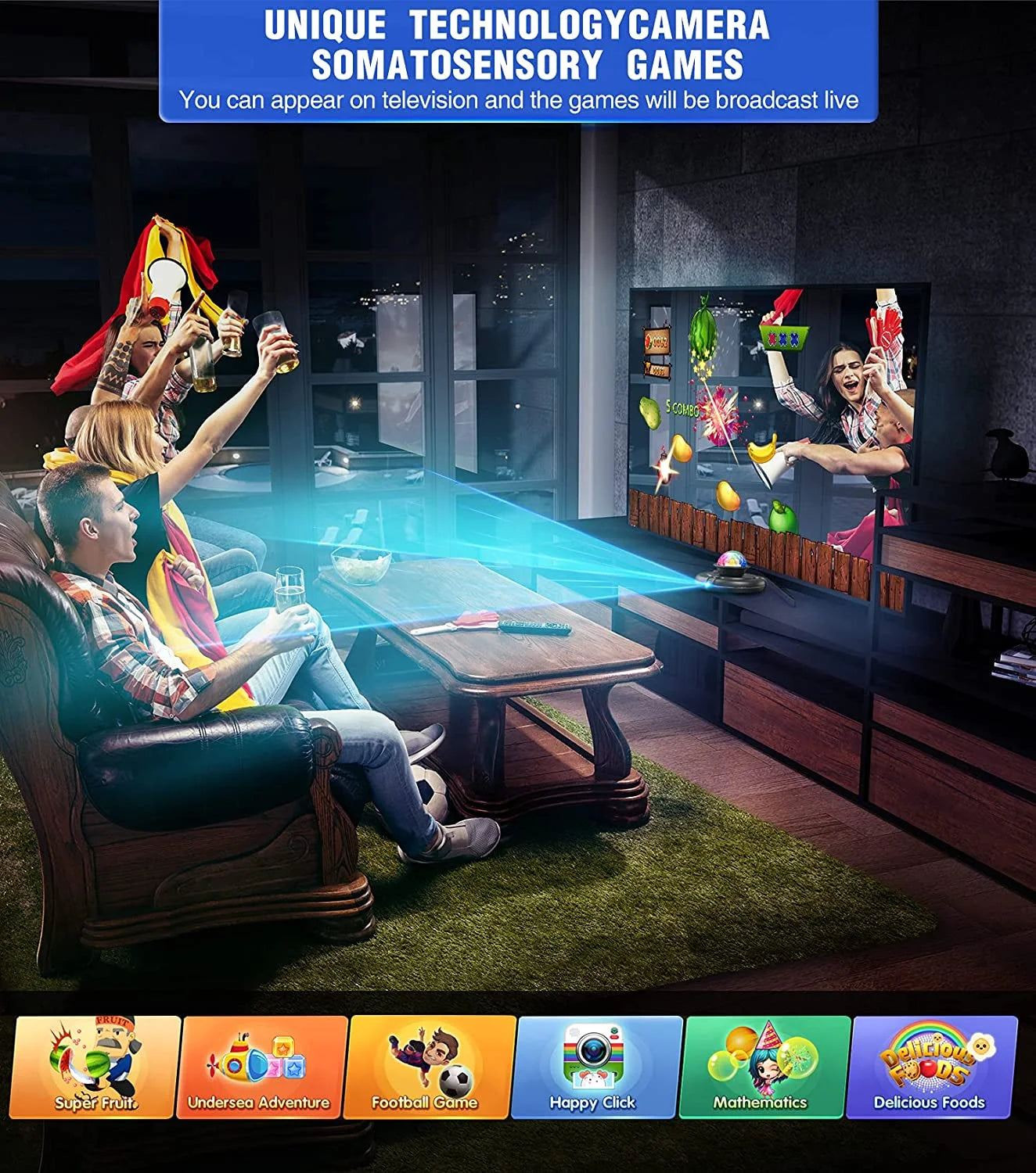 1. Set your TV or computer by HDMI input. Support by multiple games, containing Dancing, Puzzle Games, Camera Games, Running and Yoga.