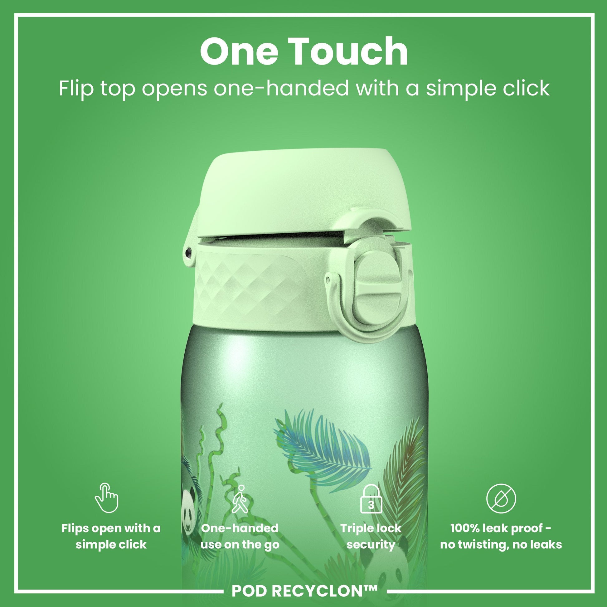 Leak Proof Kids' Water Bottle, Recyclon, Pandas, 350ml (12oz)