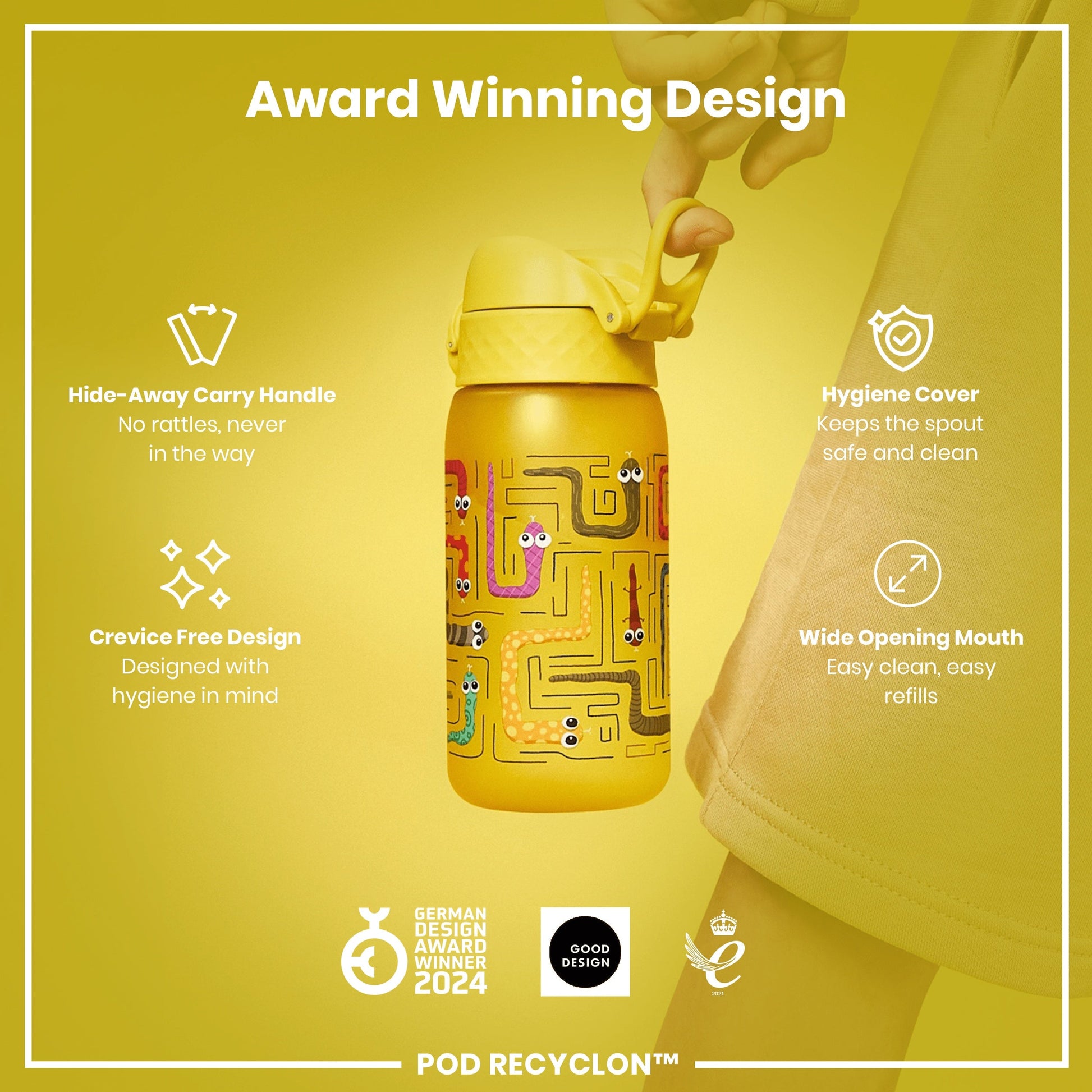 Leak Proof Kids Water Bottle, Recyclon, Snakes, 350ml (12oz)