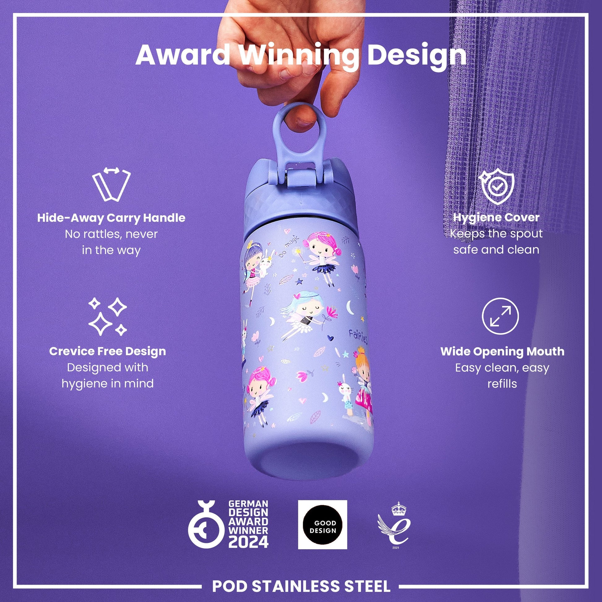 Leak Proof Kids Water Bottle, Stainless Steel, Fairies, 400ml (13oz)