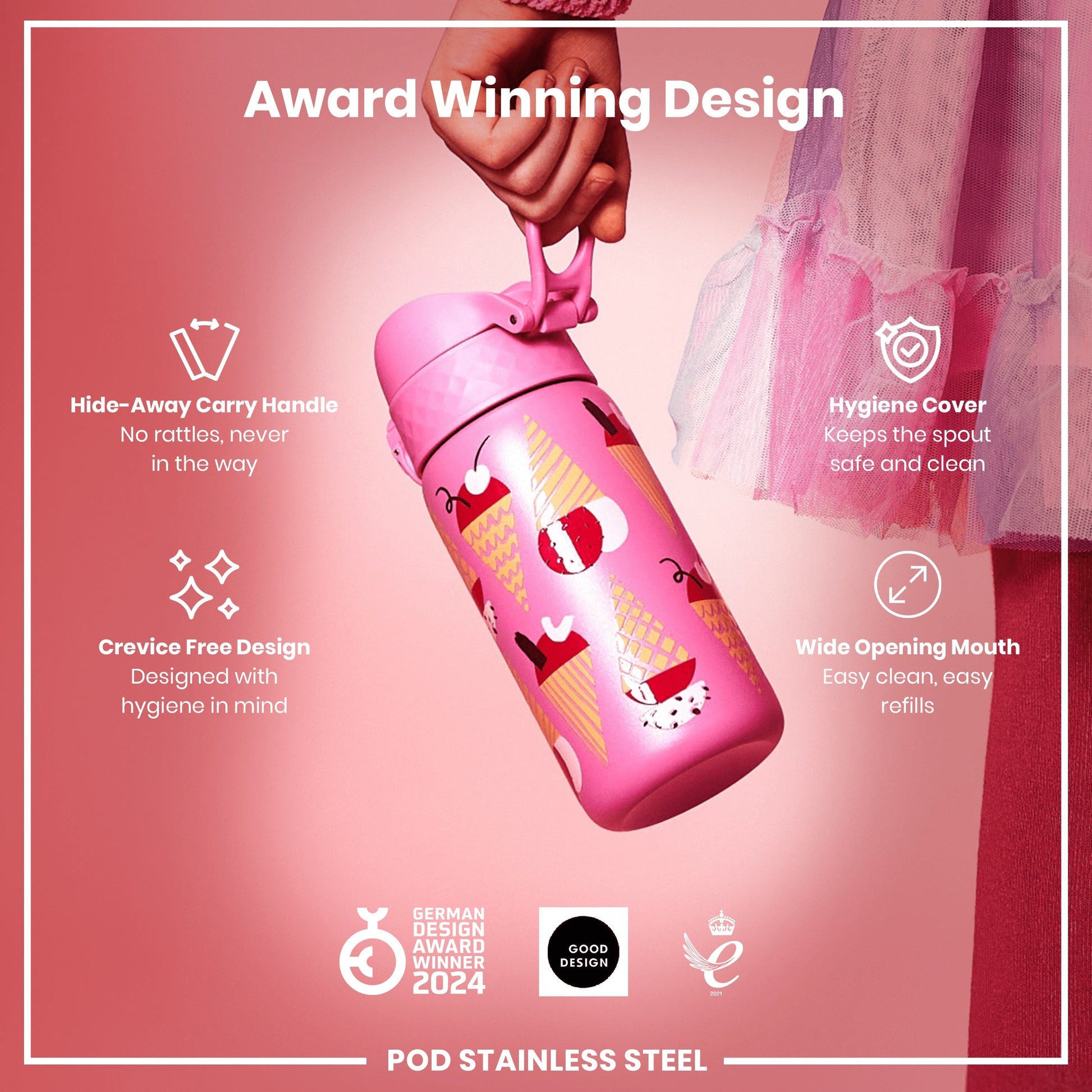 Leak Proof Kids Water Bottle, Stainless Steel, Ice Creams, 400ml (13oz)