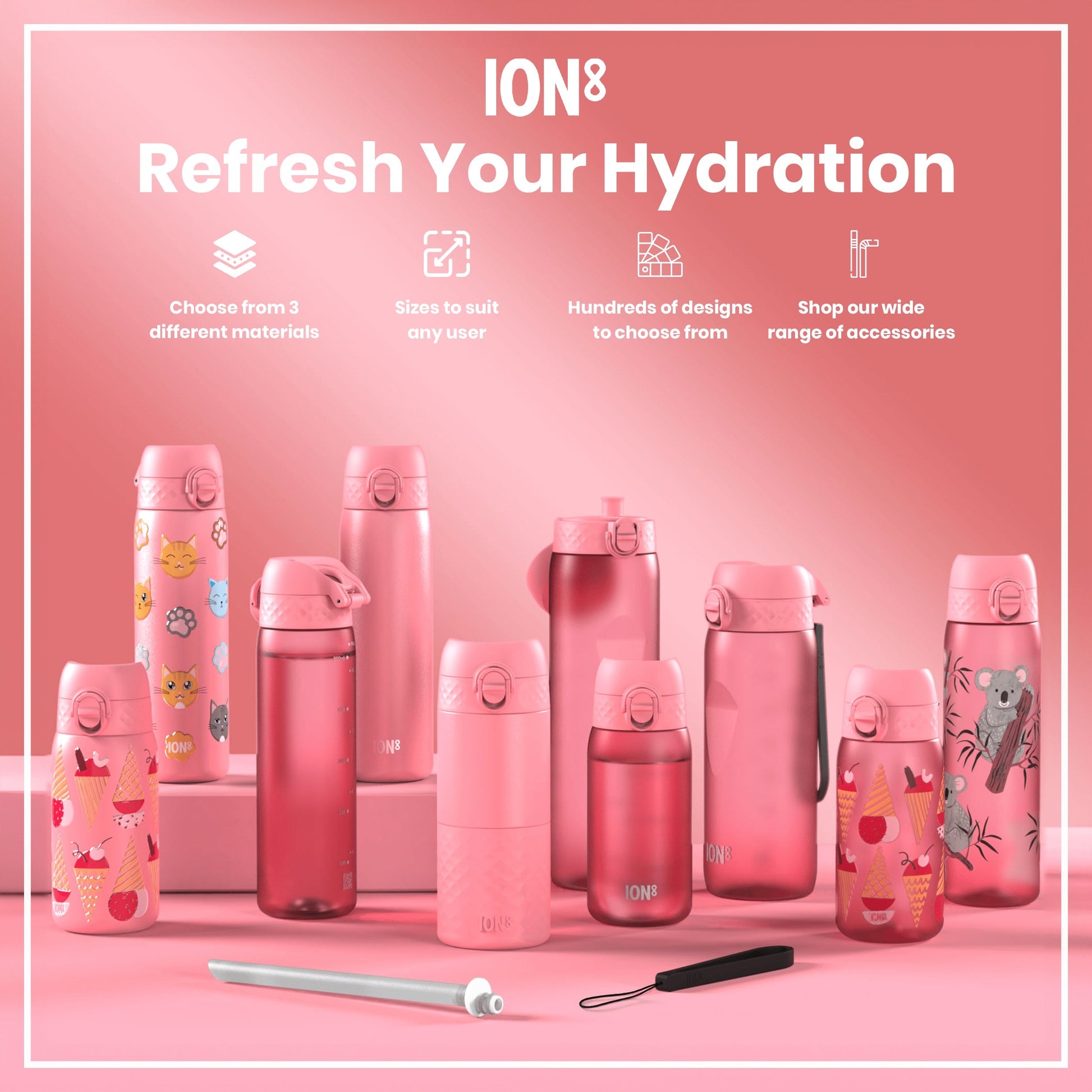 100% leak proof 400ml / 13oz stainless steel water bottles with a smooth flow for spill-free hydration and hygienic full-flip top cover for one handed use on-the-go.