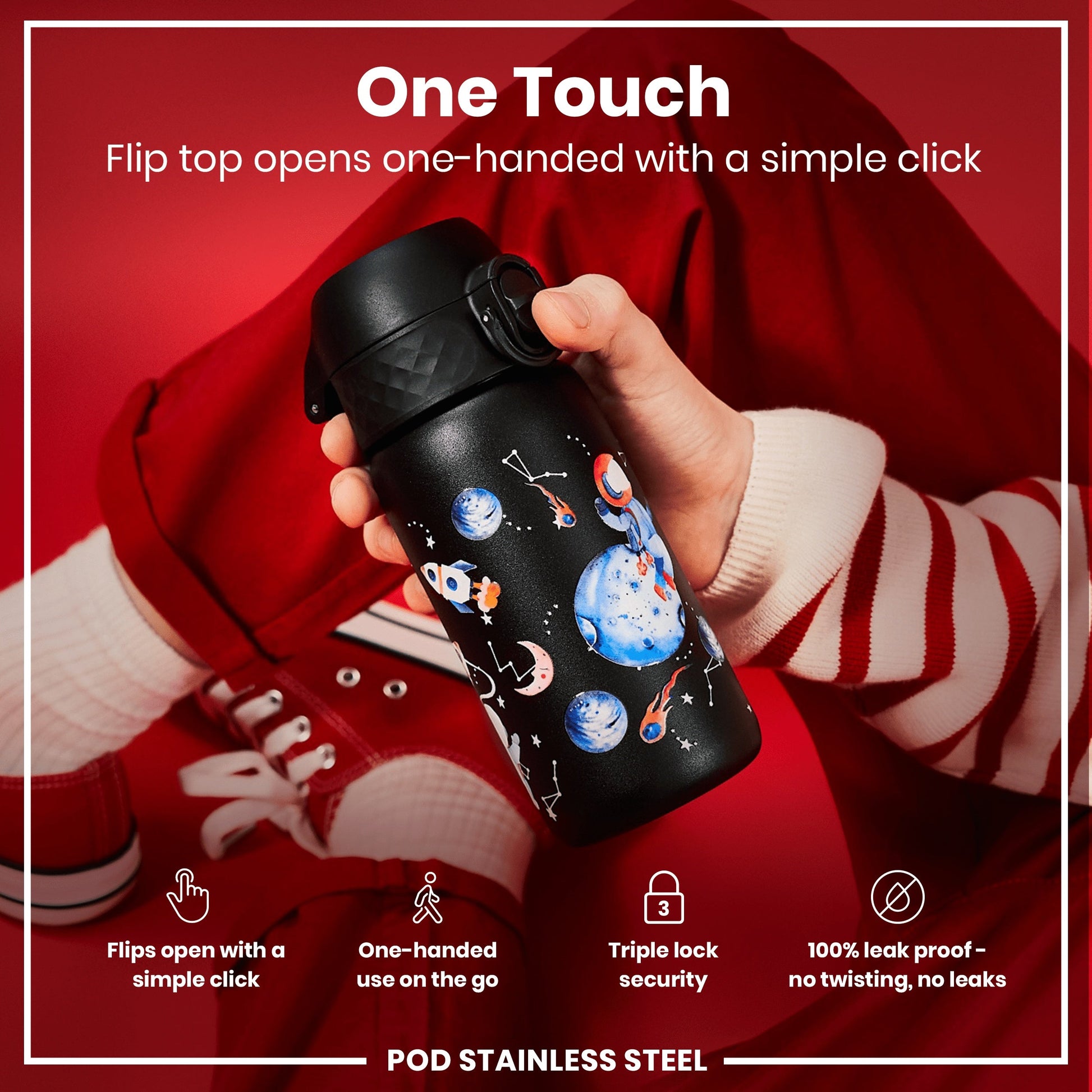 Leak Proof Kids Water Bottle, Stainless Steel, Space, 400ml (13oz)