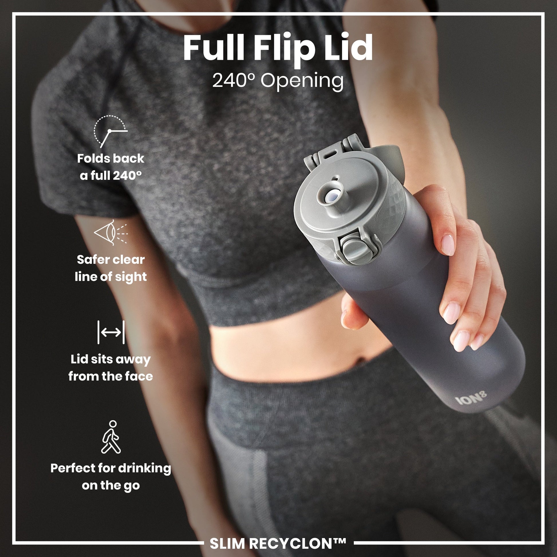 100% leak proof 600ml / 20oz BPA free medium grey water bottle with straw, with a smooth flow for spill-free hydration and hygienic full-flip top cover for one handed use on-the-go.