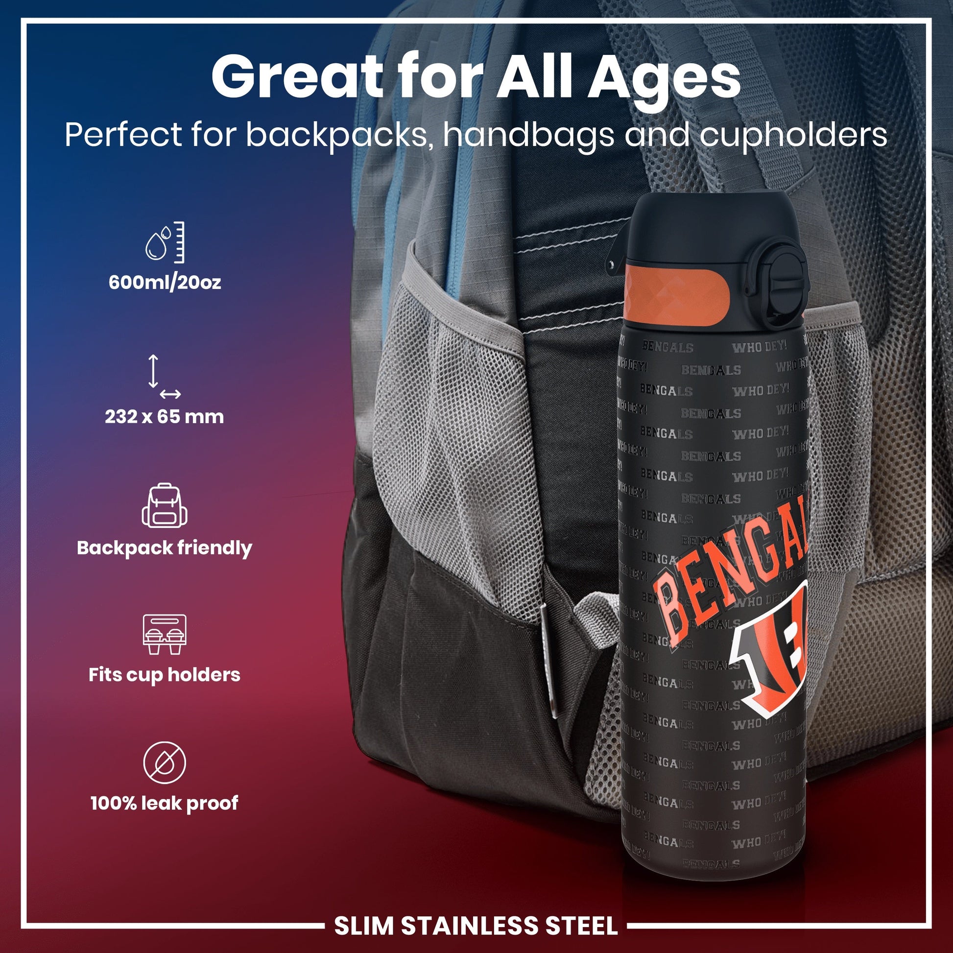 Leak Proof NFL Water Bottle, Stainless Steel, Cincinnati Bengals, 600ml (20oz)