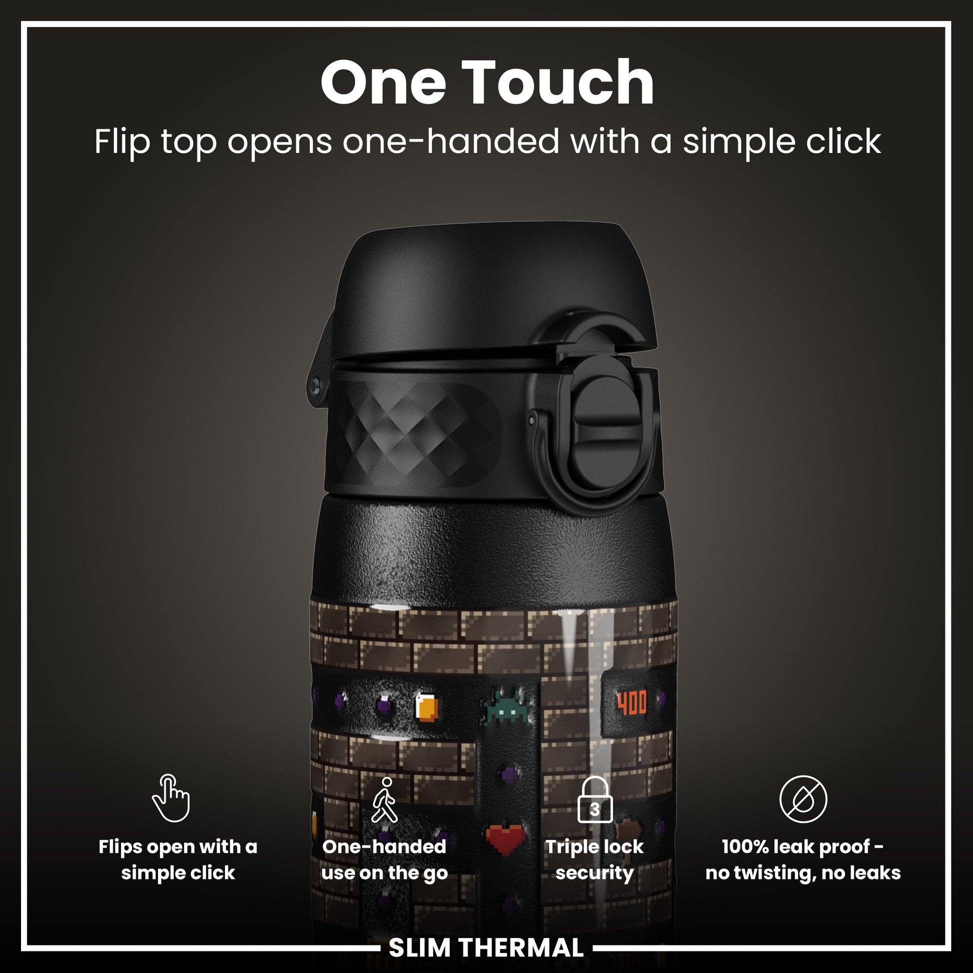 Leak Proof Slim Thermal Water Bottle, Insulated Steel, Gamer, 500ml (17oz)