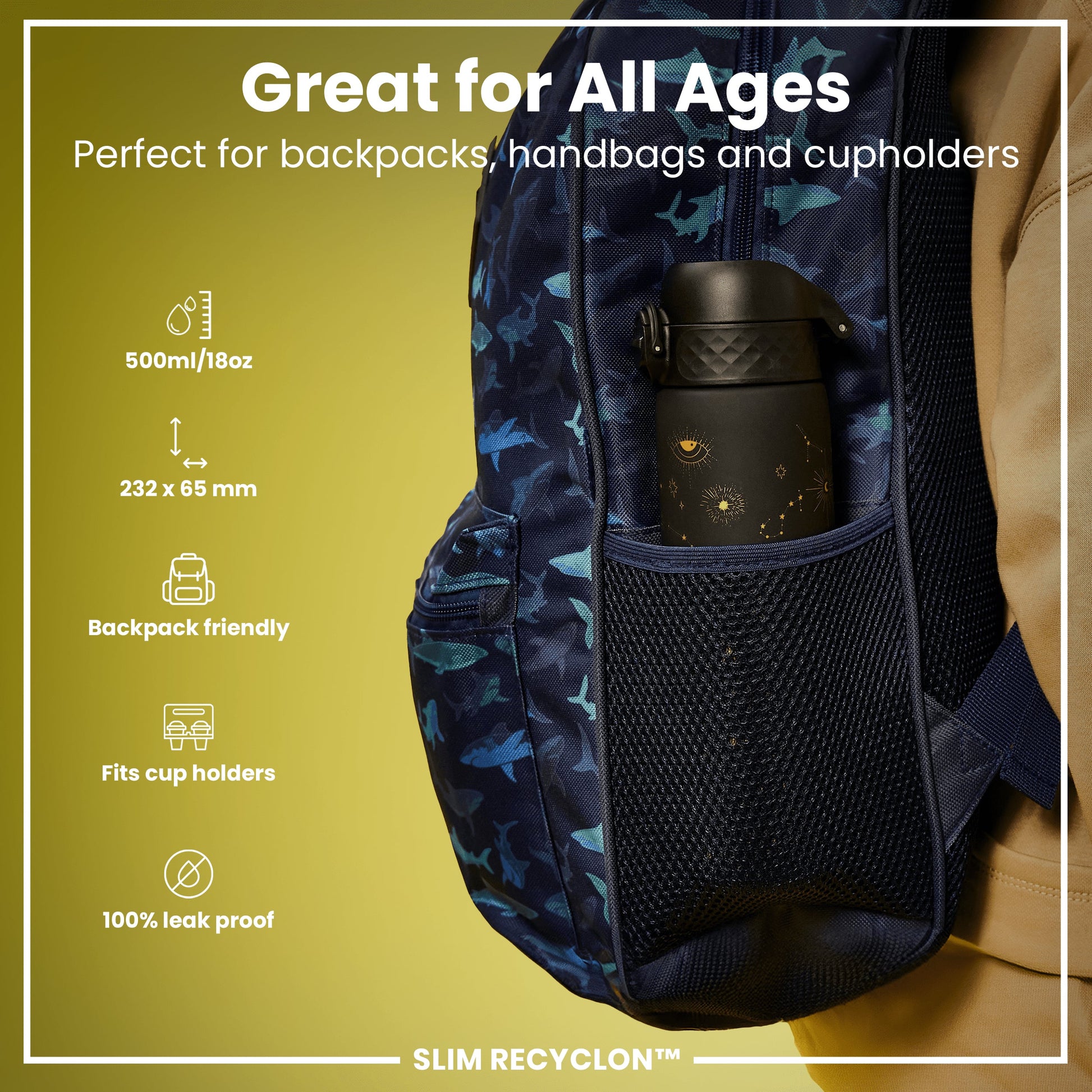 Leak Proof Slim Water Bottle, Recyclon, Celestial Universe, 500ml (18oz)