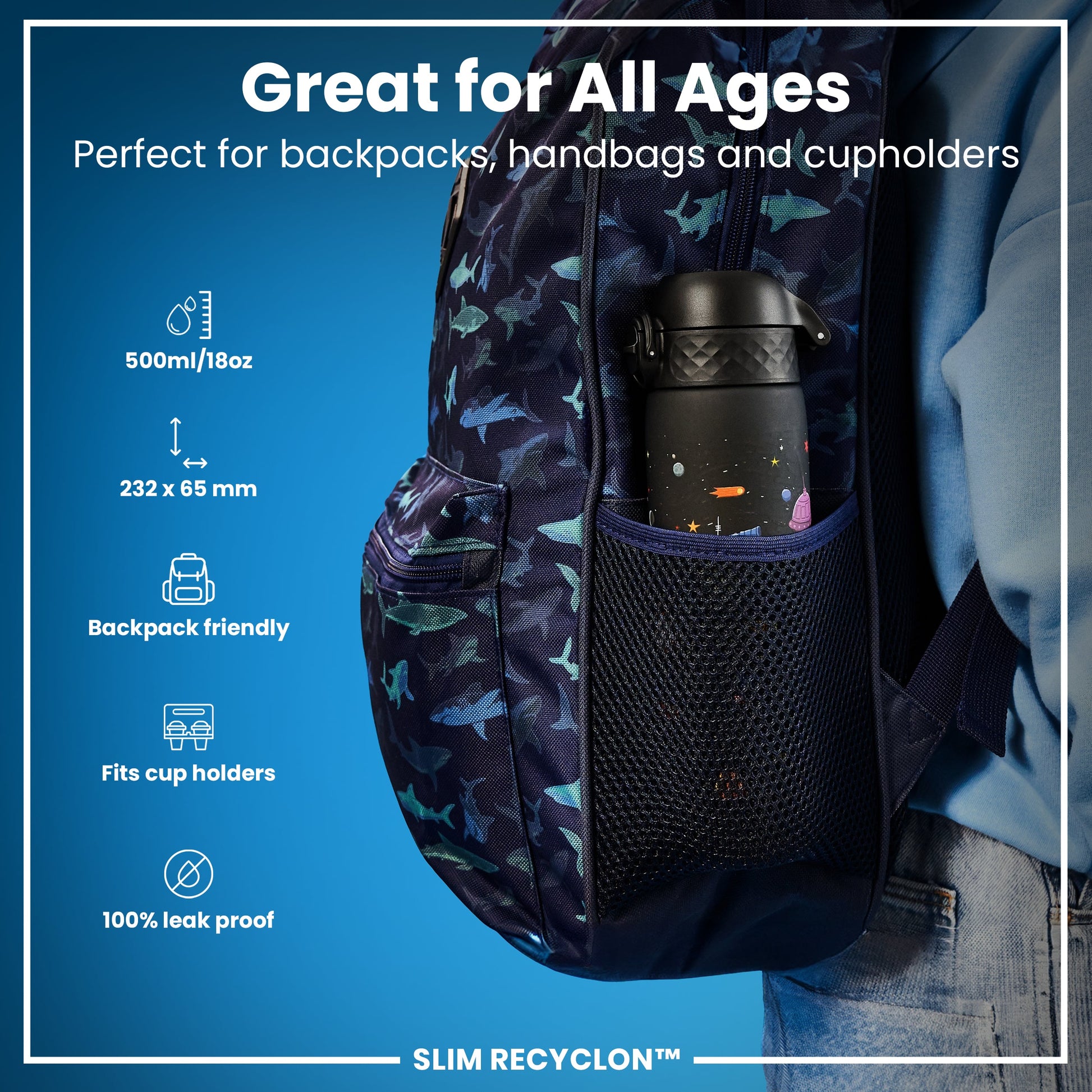 Leak Proof Slim Water Bottle, Recyclon, Spaceships, 500ml (18oz)