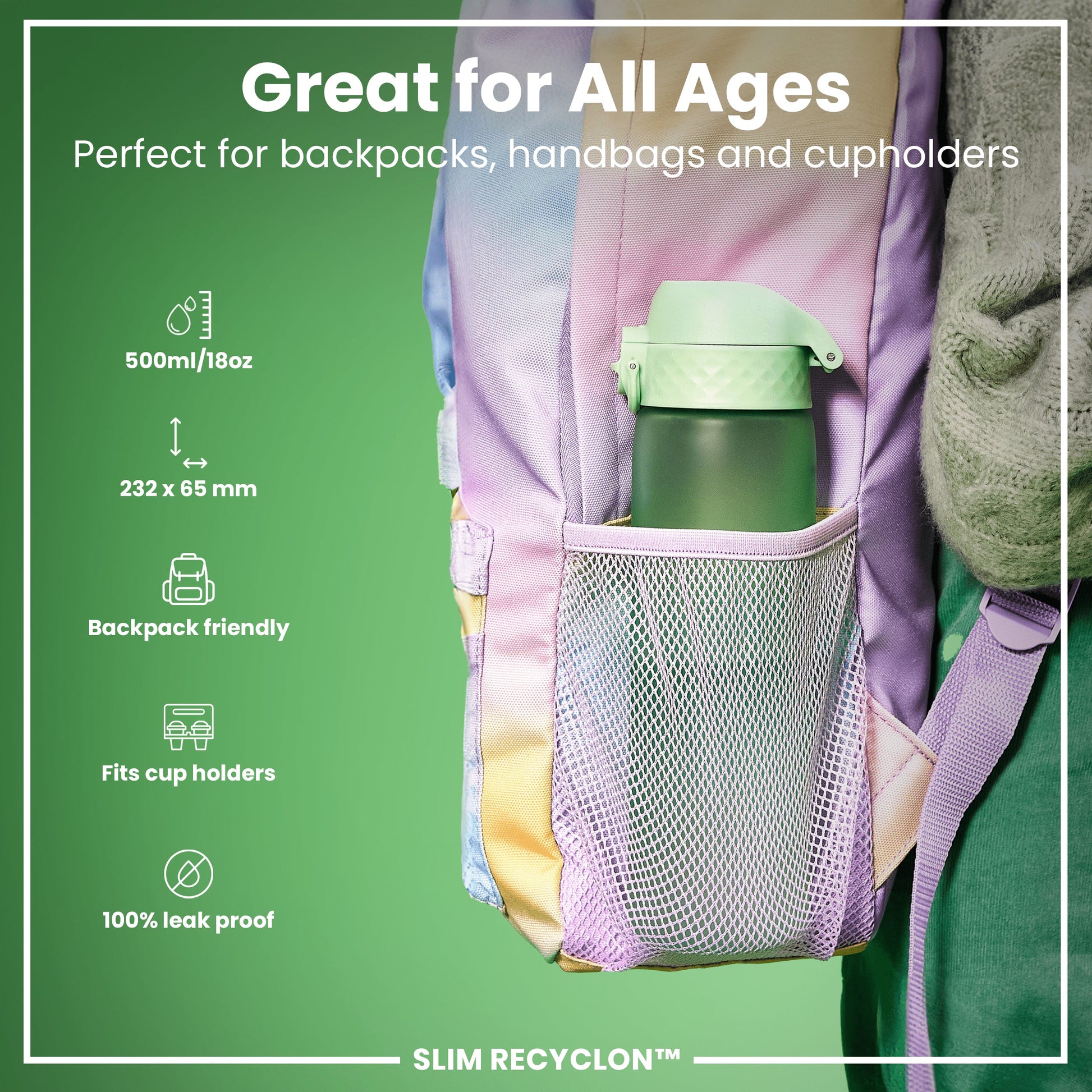 Leak Proof Slim Water Bottle, Recyclon, Surf Green, 500ml (18oz)