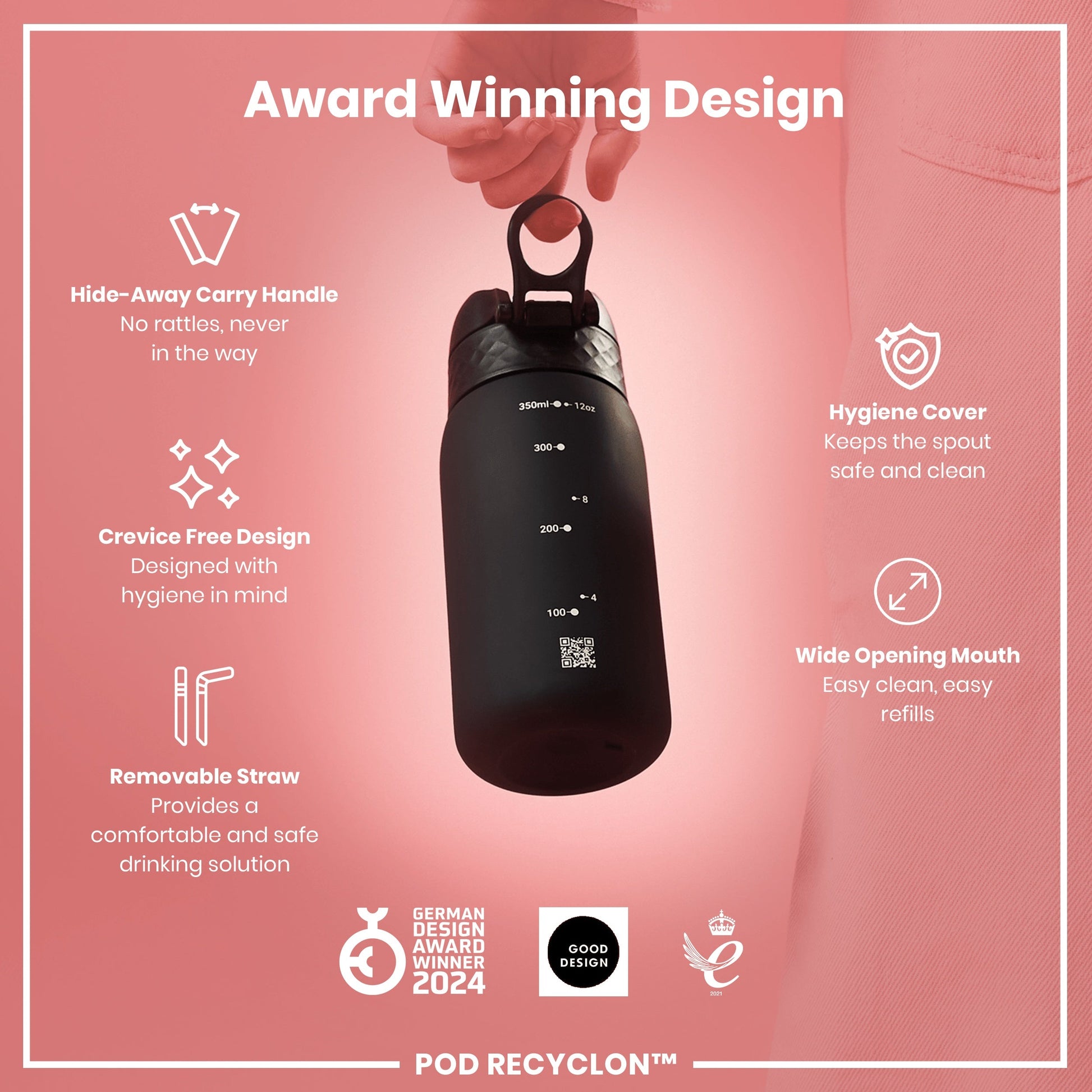 Leak Proof Small Water Bottle With Straw, Recyclon, Black, 350ml (12oz)