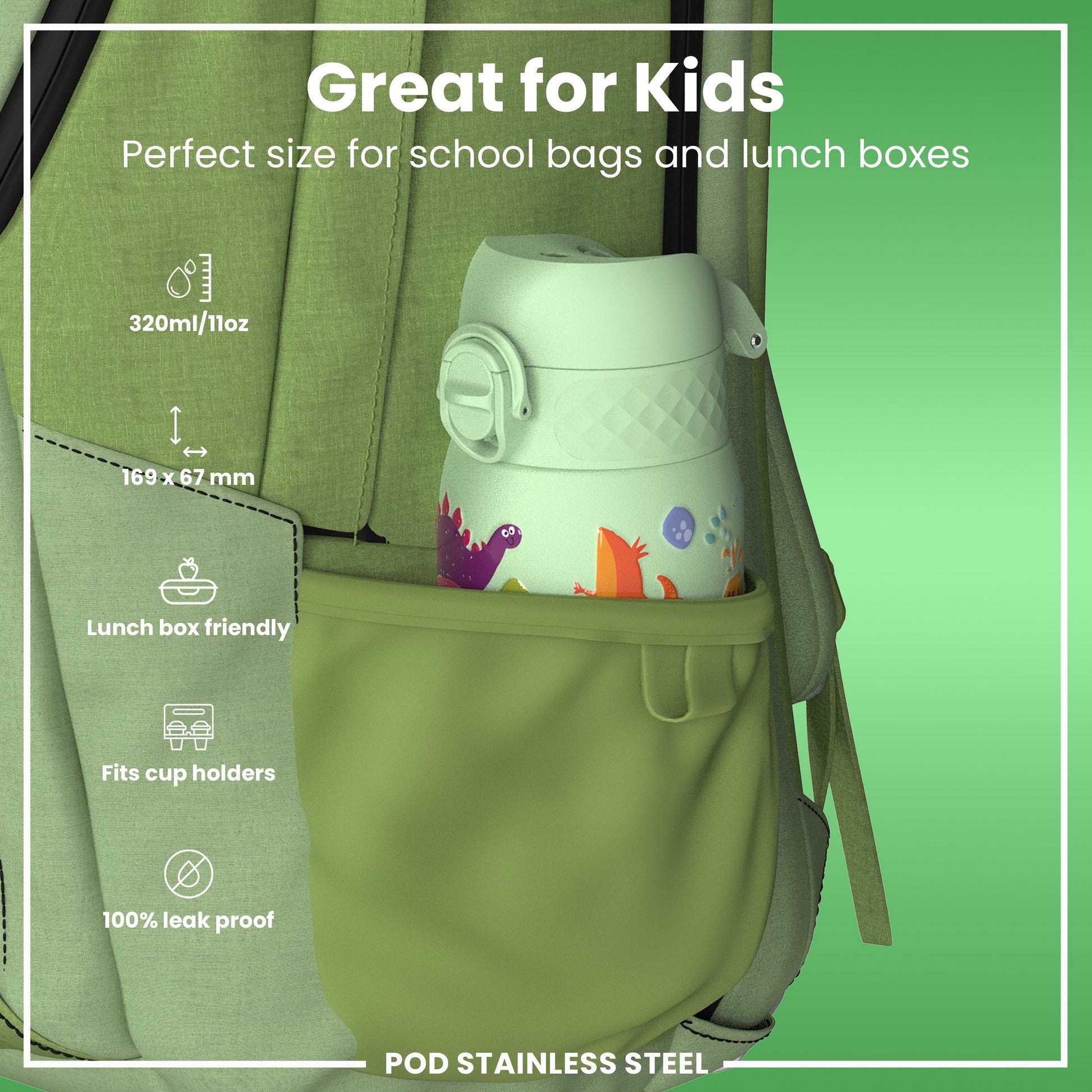 Leak Proof Thermal Steel Water Bottle, Insulated, Dinosaurs, 320ml (11oz)