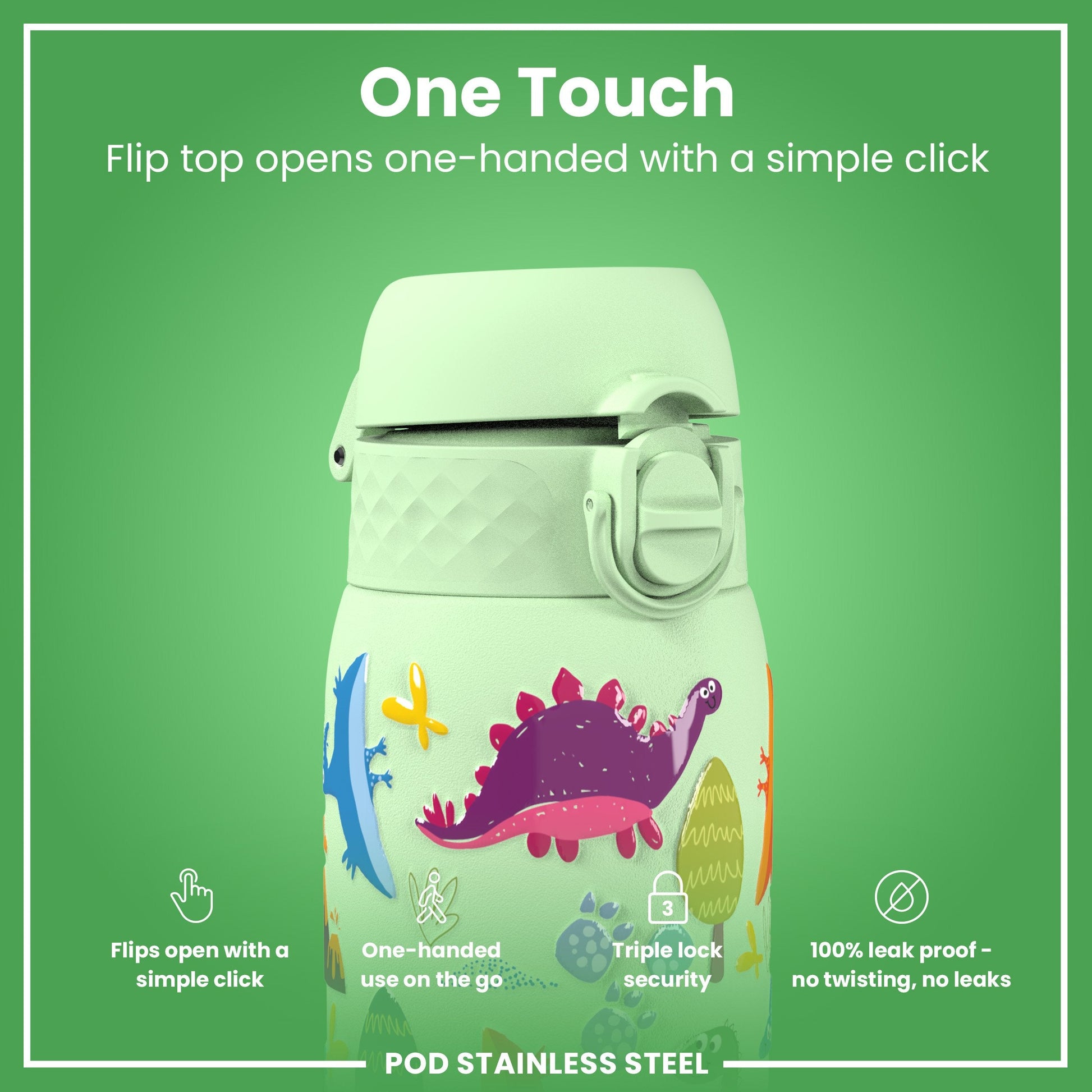 100% leak proof 320ml / 11oz kids vacuum insulated double wall stainless steel water bottles with a smooth flow for spill-free hydration and hygienic full-flip top cover for one handed use on-the-go. Keeps hot drinks hot and cold drinks icy cold and fresh for hours.