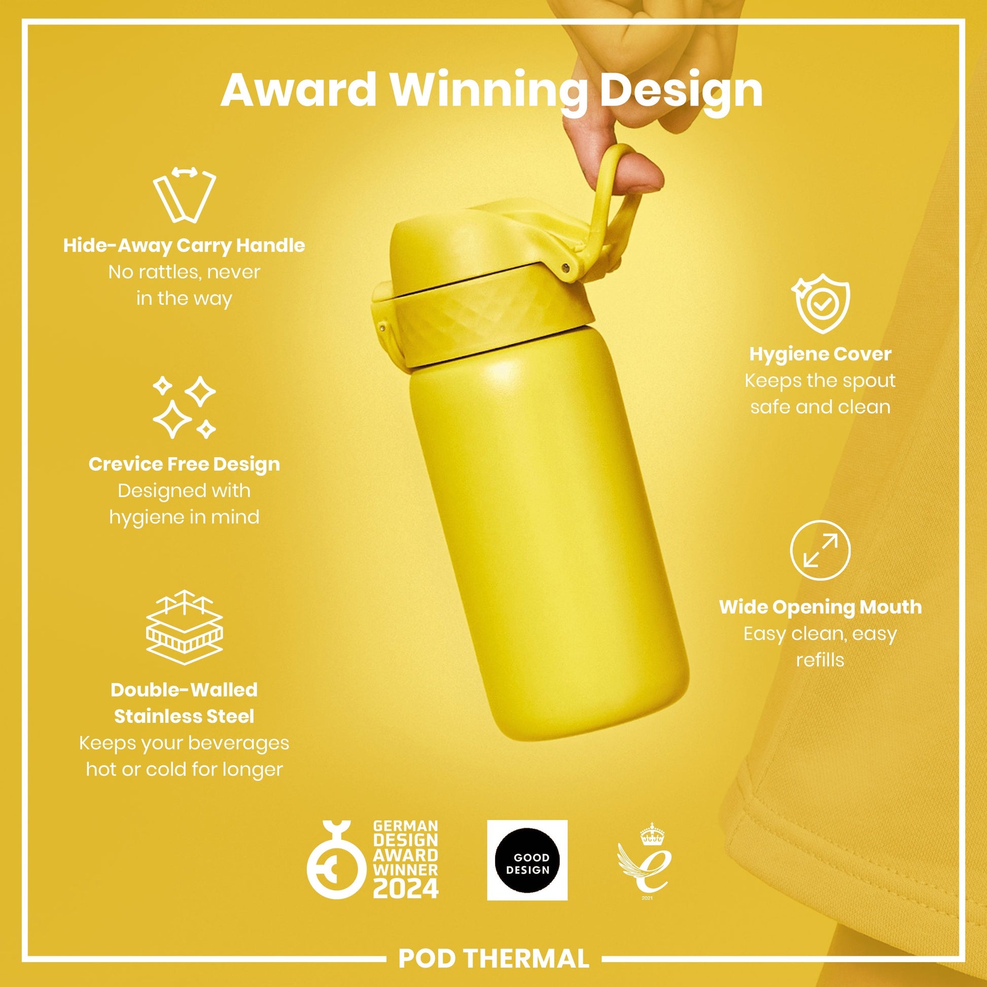 Leak Proof Thermal Water Bottle, Insulated Steel, Yellow, 320ml (11oz)