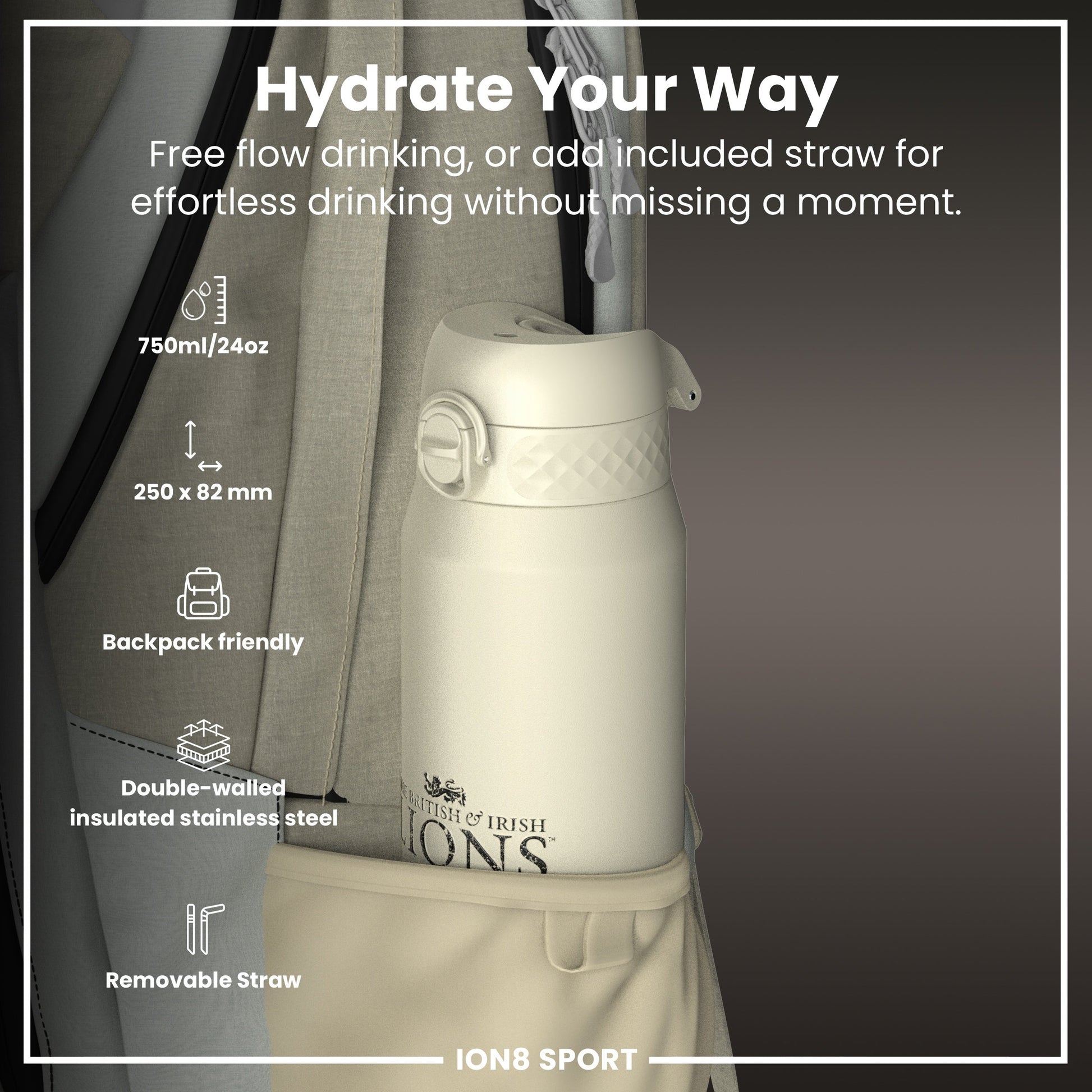 Lions X ION8 Insulated Steel Water Bottle, British & Irish Lions, Crest, 750ml (24oz)