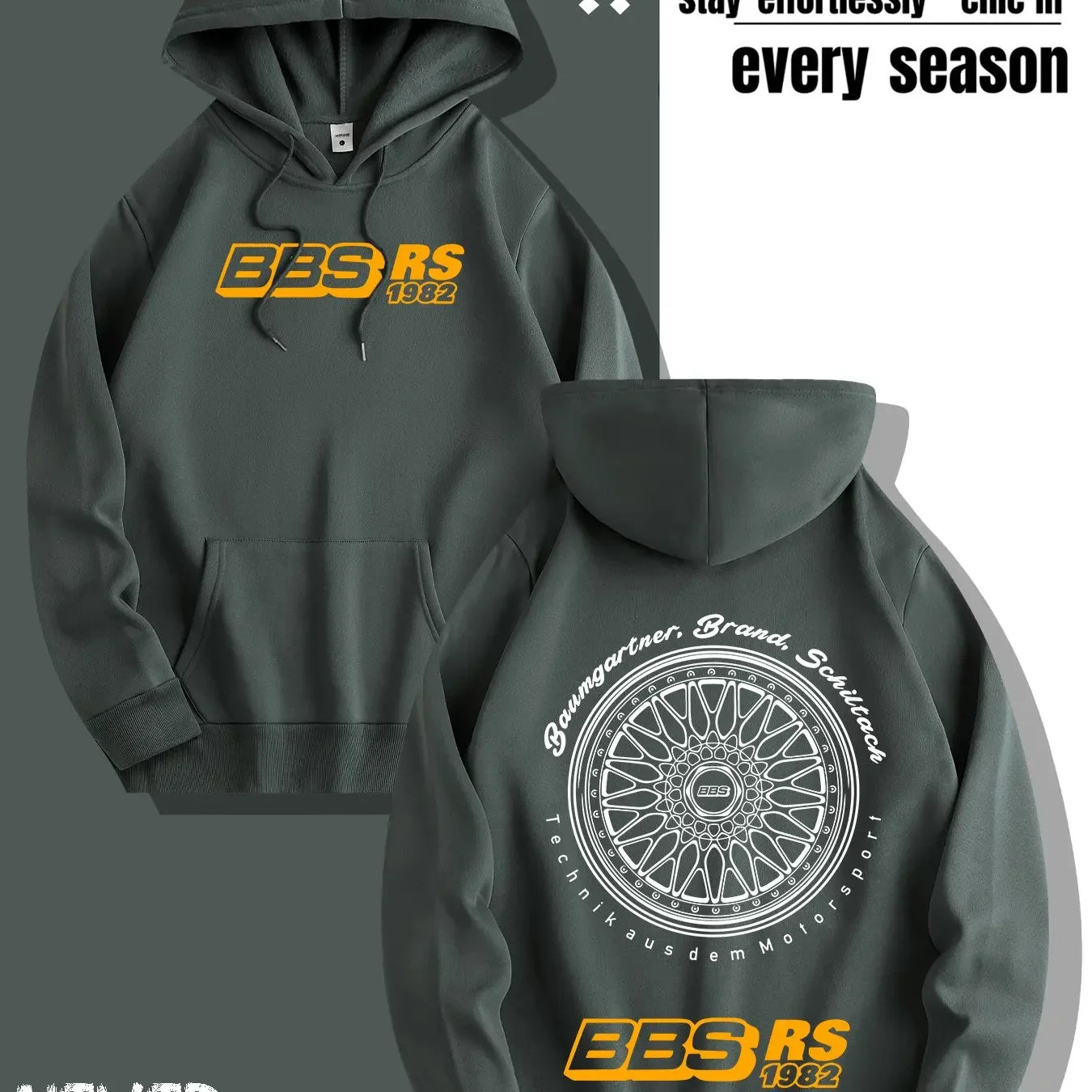 Men's Casual Hooded Sweatshirt Printed with BBS Wheel Logo Autumn and Winter Fashion Pullover Sweater Hoodie