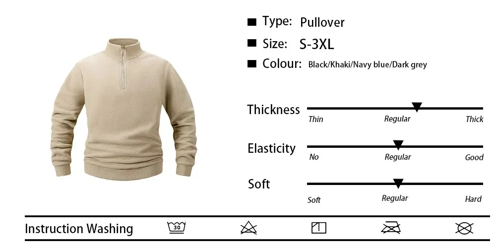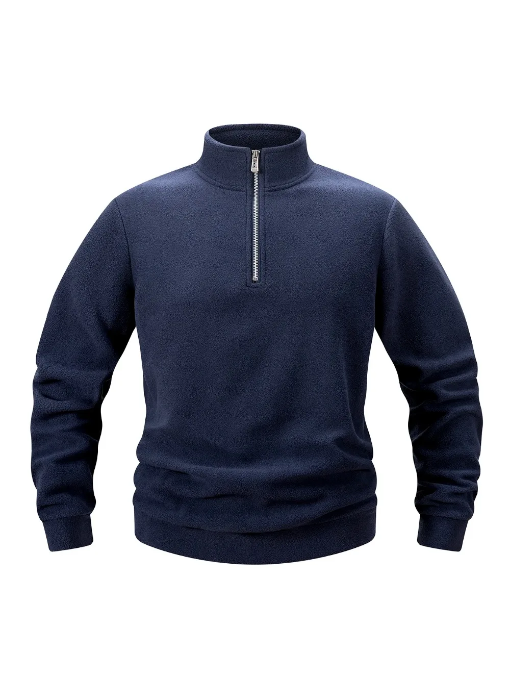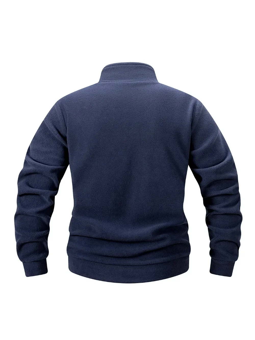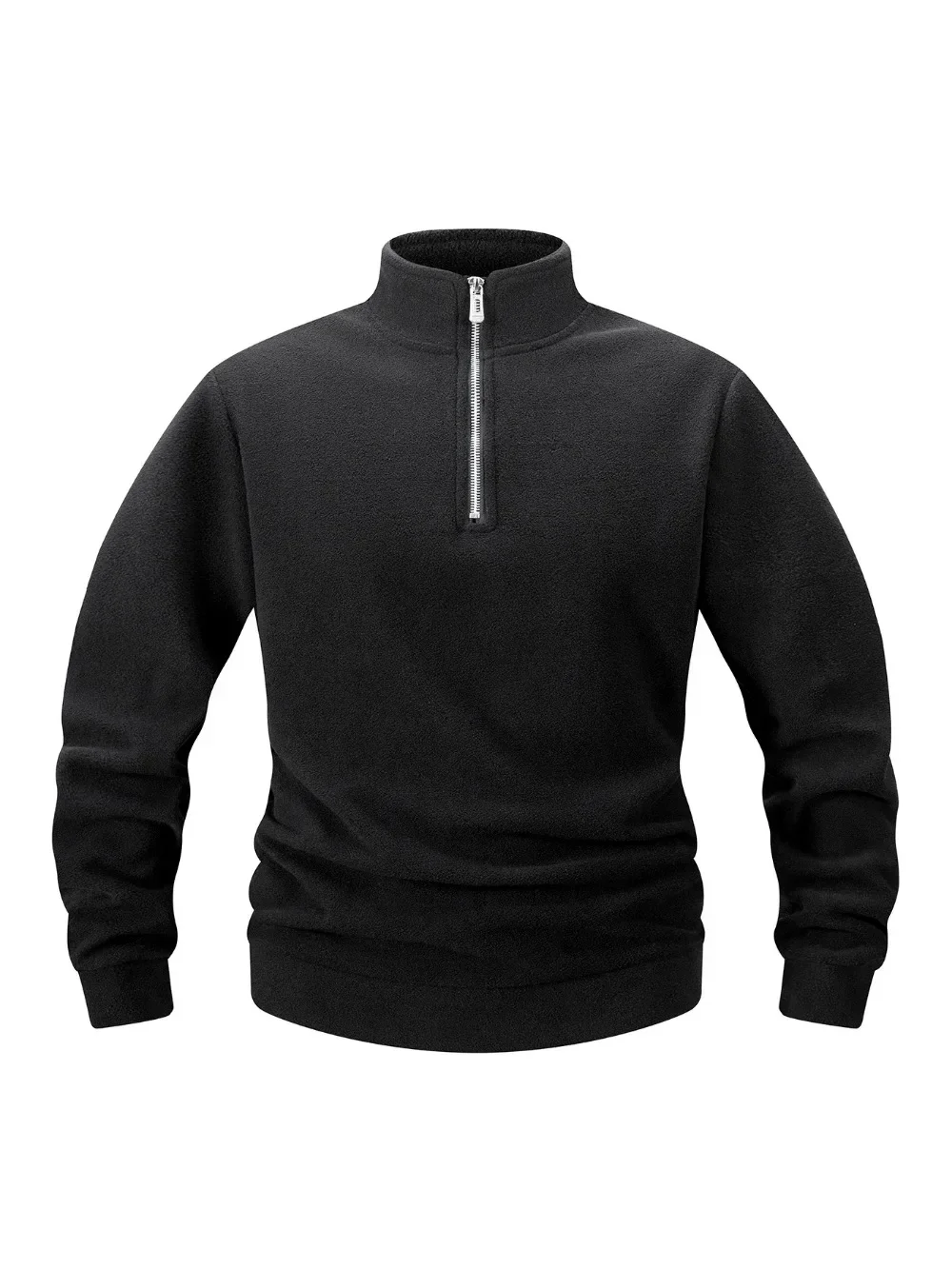 Men's Fleece Half Zipper Pullover Autumn Thicken Warm Sweatshirts Stand Up Collar Loose Casual Long Sleeve Sportswear Clothing