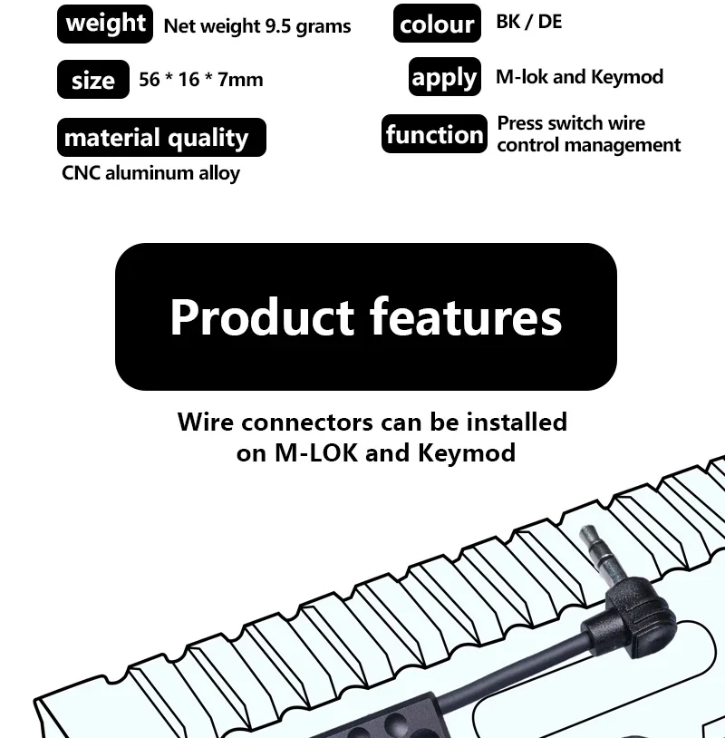 Mlok Keymod System Laser Flashlight Tactics Wire Guide Pressure Remote Switch Cable Management Airsoft Metal Weapons Accessories