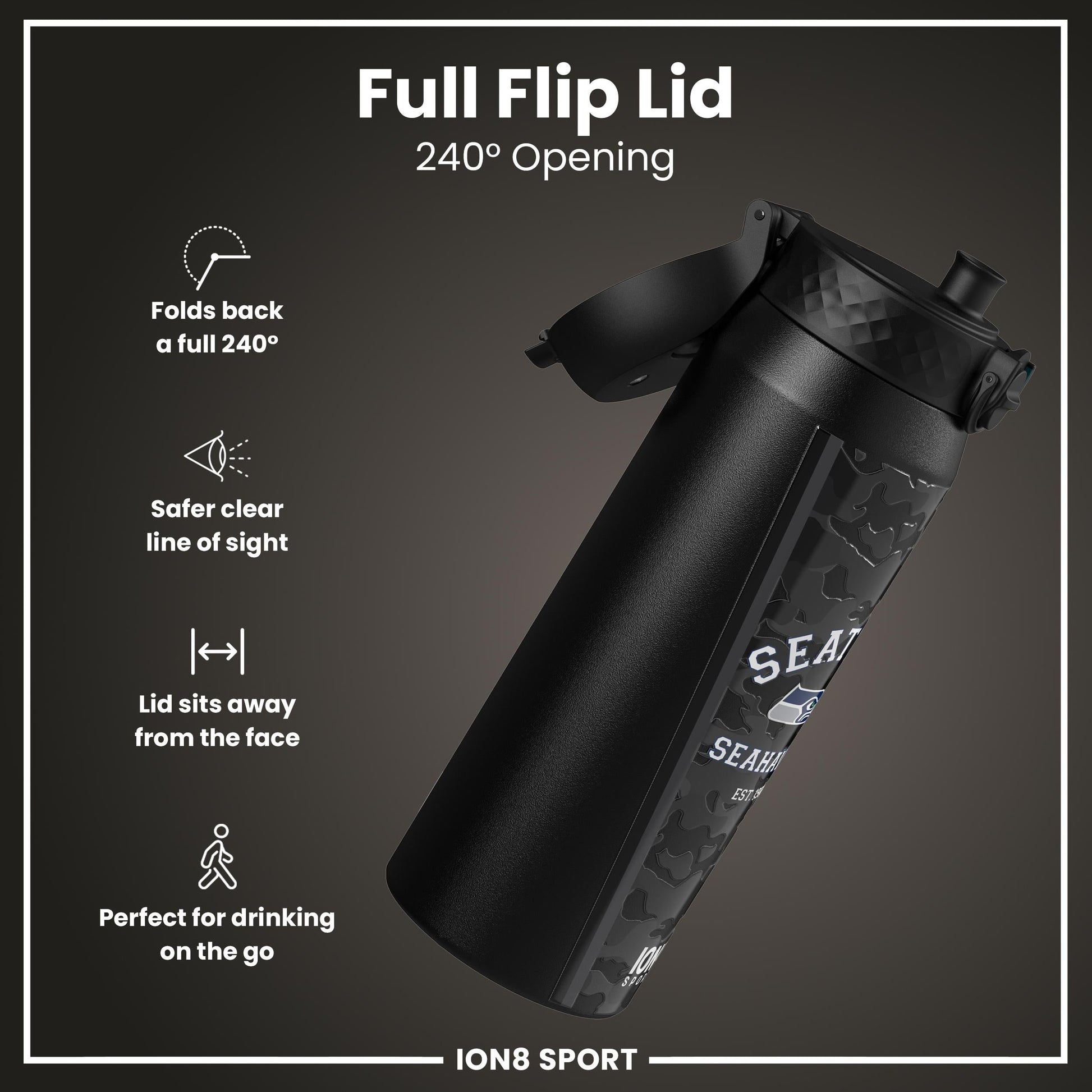 240-Degree Flip-Back Lid: The hygienic, one-touch lid flips back fully for a clear view of the action while you hydrate, keeping you focused in the moment.
