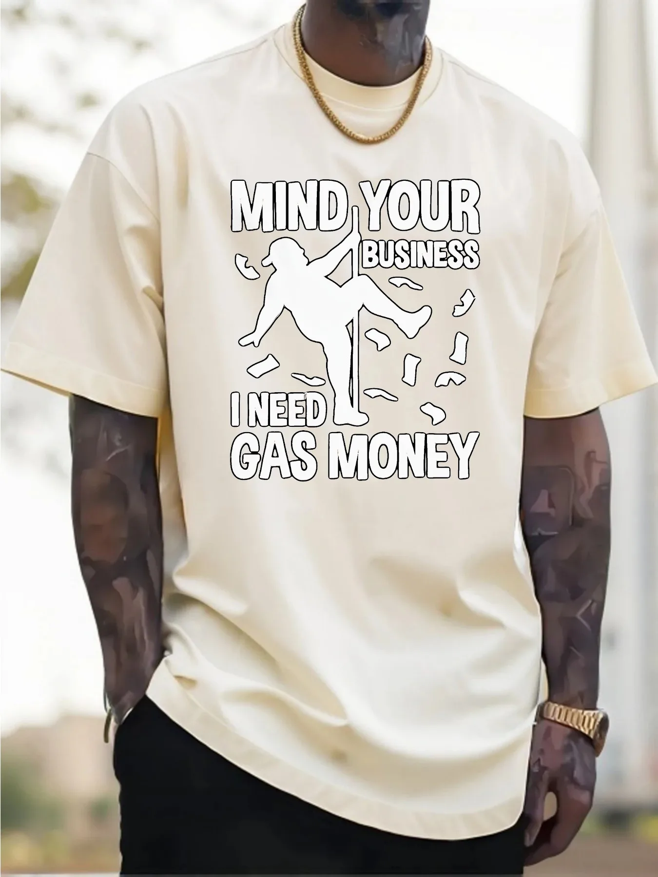 Pure Cotton Men'S T-Shirt with Mind Your Business Need Gas Money Print for Casual Wear Graphic Tee