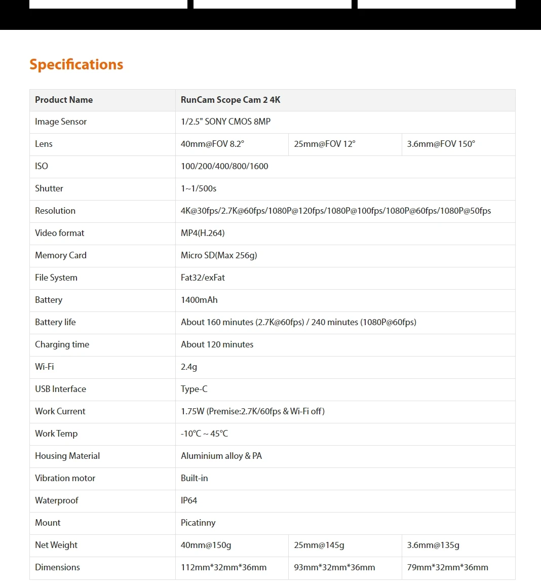 RunCam ScopeCam 2 4K Airsoft Camera