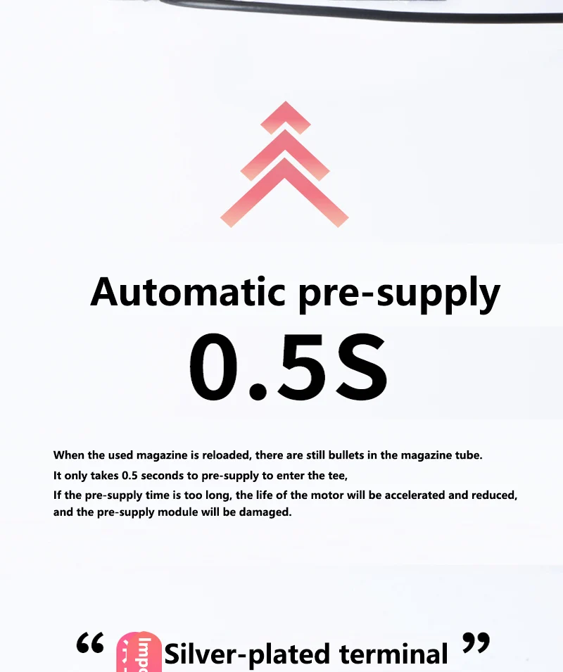 Auto-loading function is designed for gel ball blaster magazines with motor inside, when changing the magazine, the magazine motor will run automatically for 0.5 second.