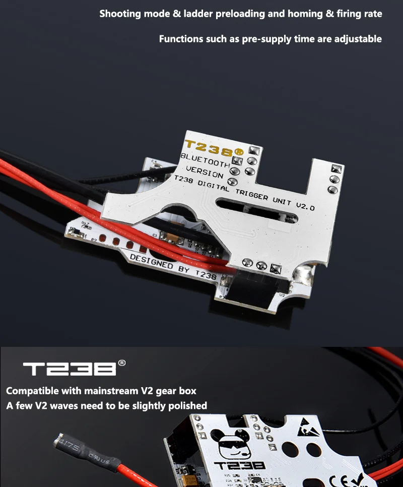 T238 V2.0 Mosfet Moudle Bluetooth Version Optical Sennor Digital Trigger Unit App Programming for Airsoft Gel Ball Gearbox V2