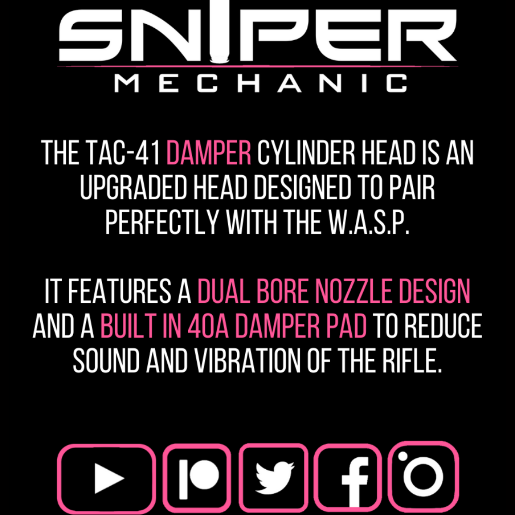 The Tac-41 Damper Cylinder head is an upgraded head designed to pair perfectly with the W.A.S.P. This is the GBB version, which comes in a few different variants depending on what you need.