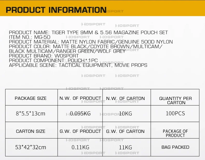 Package includes:1*Tactical Molle Magazine Pouch