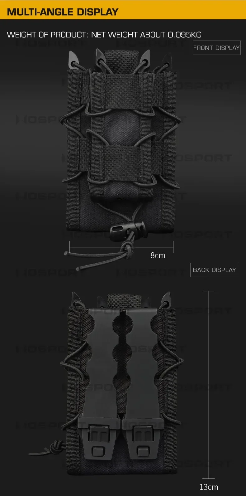 5: Double-Layer holder New Design: new upgraded, it hold twice layer magazines ,one layer to fasten Rifle Mags and One layer to fasten Pistol Mags