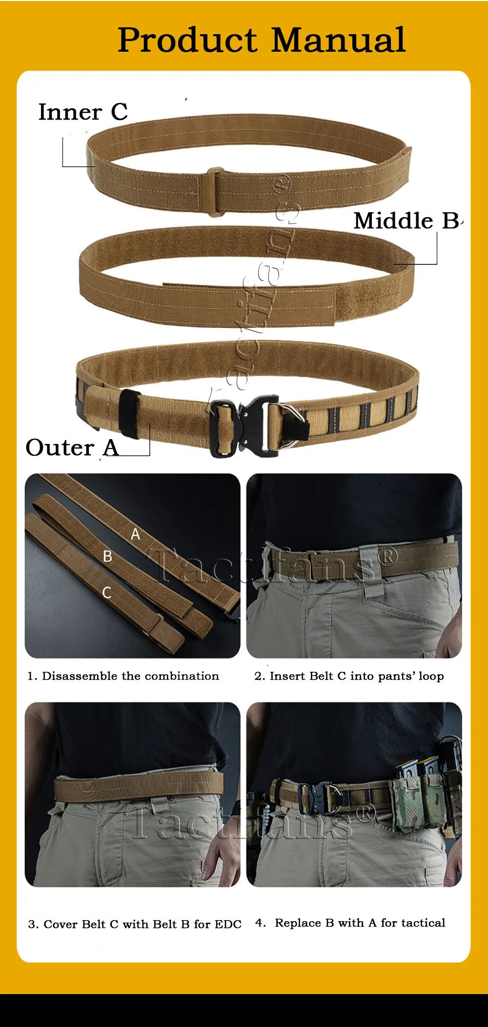 Combining design: 3 in 1--3 layers, outer, middle and inner belt