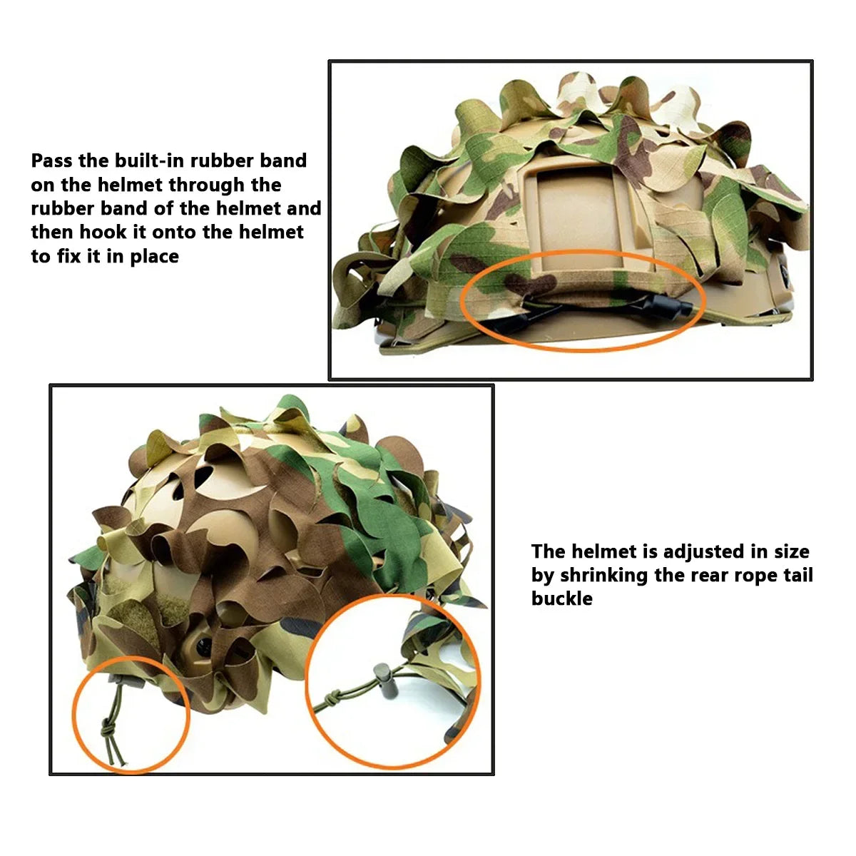 3. Simple assembly: pass the elastic band on the helmet cover through the helmet, hook it on the helmet to fix it, and tighten it according to your preference.