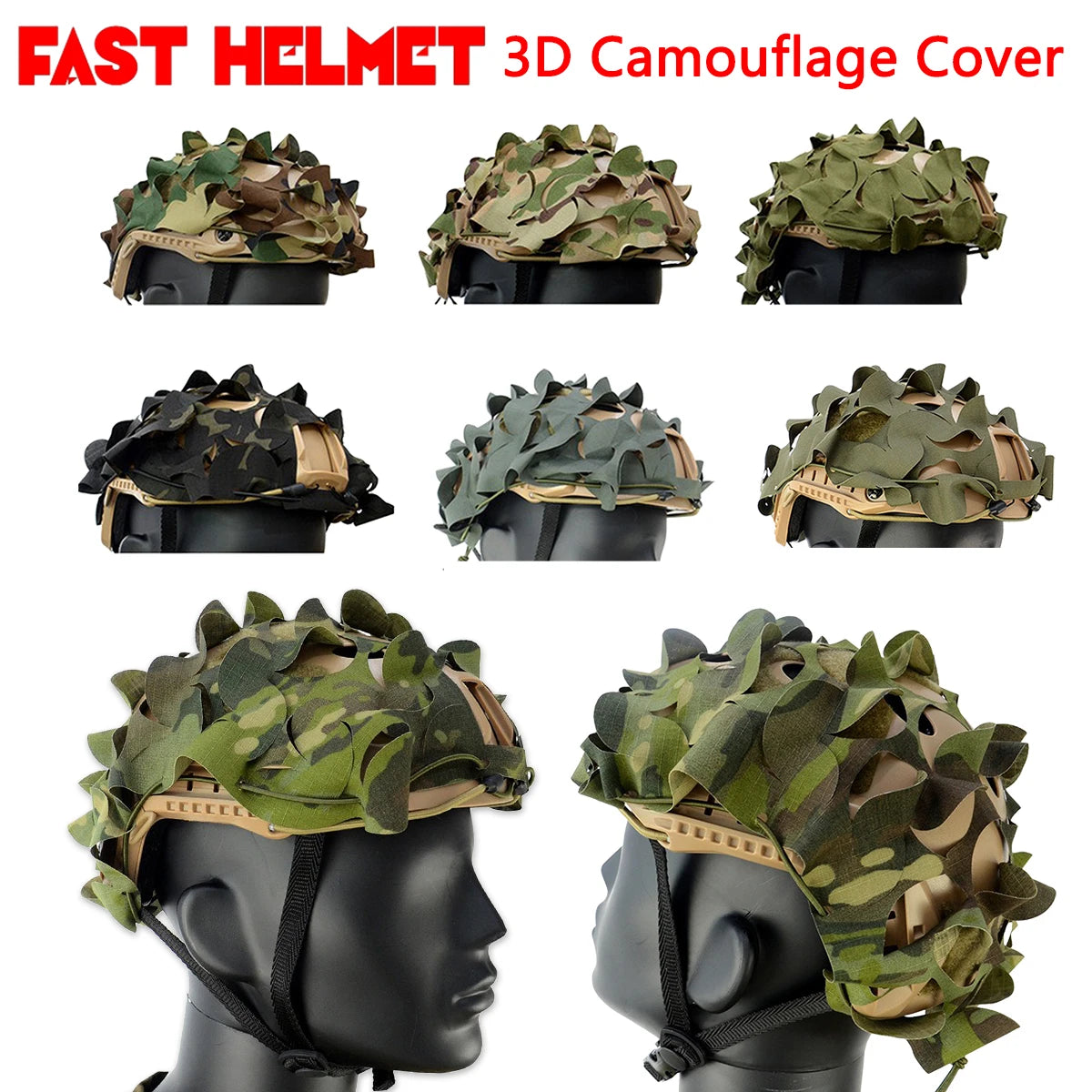 Tactical FAST Helmet Cover 3D Camouflage Helmet Cloth Laser Leaf Shape Cut Hunting Paintball Airsoft Helmets Accessories