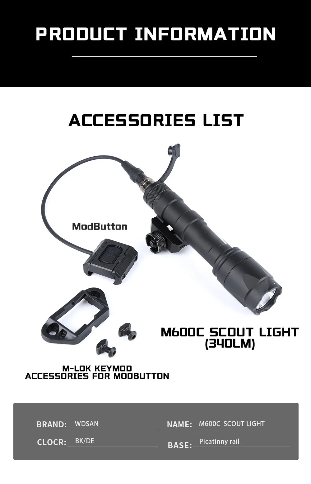 Tactical SF M600 M600B Flashlight Scout Lamp Fit MLOK KEYMOD Switch M600C White LED Light AR15 Rifle Airsoft Hunting Accessories