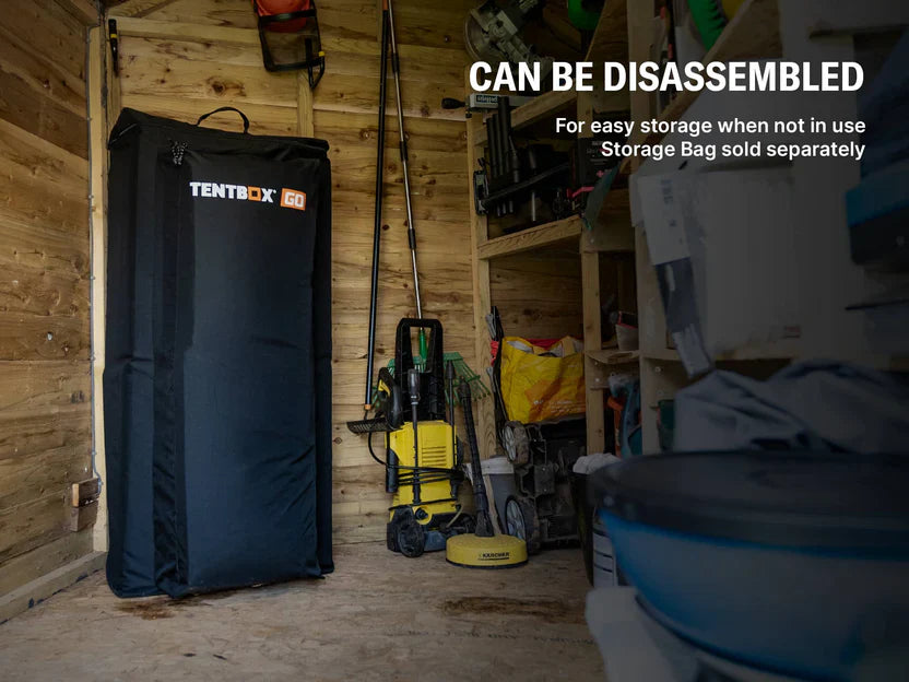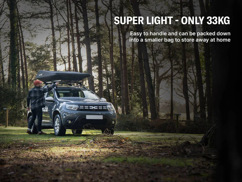 It arrives flat-packed, with the initial setup taking around 60 minutes. Once fitted to your car - you can open and close it in just 60 seconds when you're ready to camp. If you don't want to keep it on your car all year, you can completely disassemble it again and store it in the compact GO storage bag (sold separately).