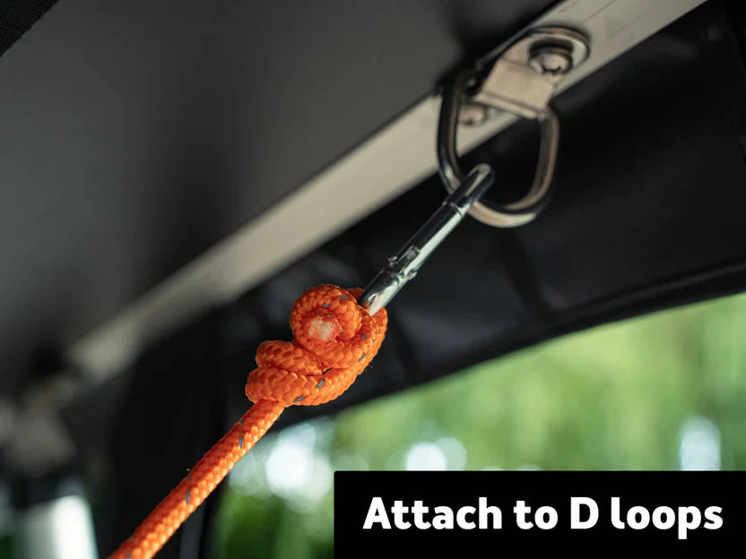 Secure the fold-out of your TentBox Lite 2.0 or XL with these handy guy ropes (sold as a pair). Simple to install by connecting to the D loops on your TentBox, then attaching to your wheel, or pegging to the ground.