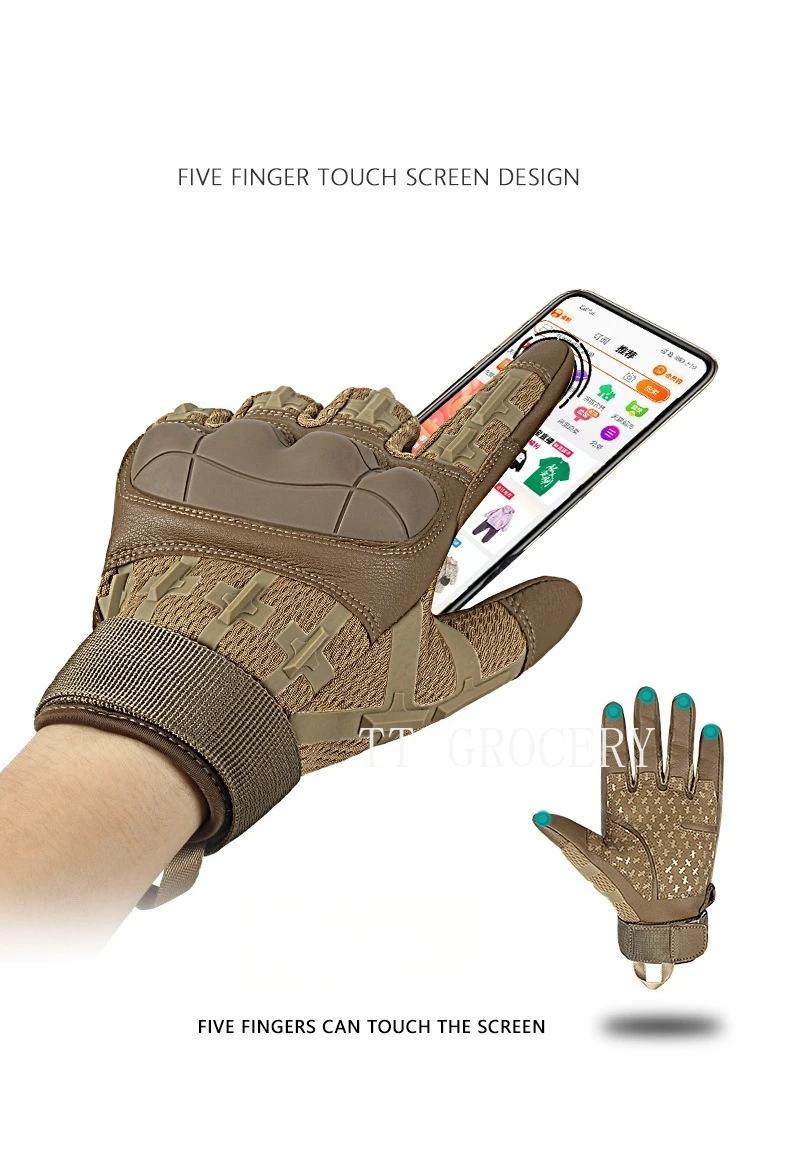 Touch Screen Cycling Gloves PU Leather Airsoft Hunting Shooting Hiking Bicycle Outdoor Sport Riding Bike Protective Men