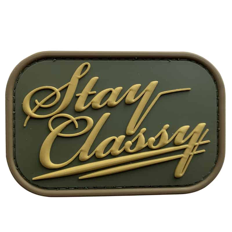 Tell everyone to stay classy with this decent sized patch written in a fancy italic font. Approximately 7.5x5cmShare