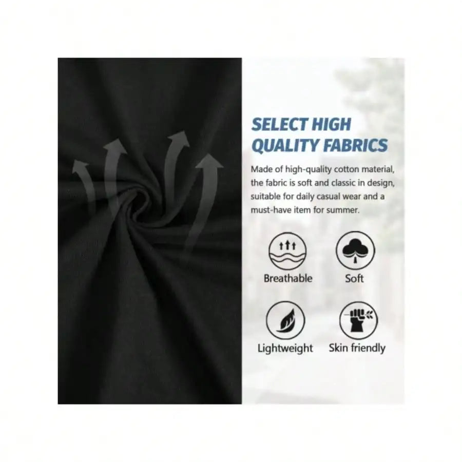 [Design Description] Printing in the Front Area Material Description 100% cotton (180gsm) Product Performance Soft and comfortable to the touch, slightly , easy to wear and match, comfortable and fashionable, simple and practical, not easy to shrink, durable, fashionable and trendy Applicable scenarios Daily, home, travel, fitness exercise, etc Target audience Men [Washing instructions] Hand or machine washable, do not soak for a time, do not bleach, and the temperature of the washing solution should not exceed 45 º C. [Special note] This size data was measured under flat clothing, with a chest circumference of 1/2. Due to different measurement methods, an error within 2-4cm is considered normal