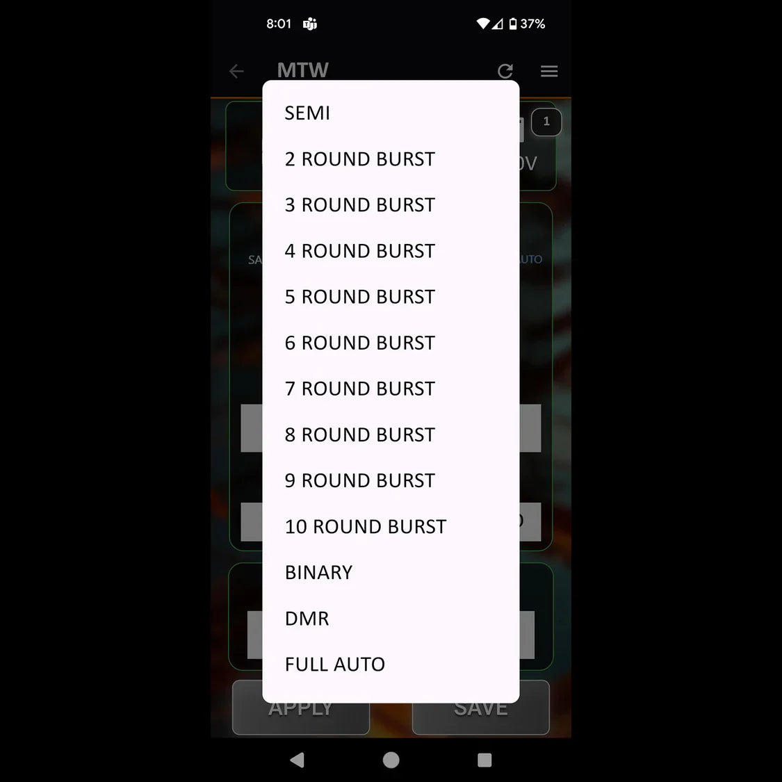 - Assign any fire mode to any selector position including semi, 2-10 round burst modes, full-auto, DMR mode and binary!