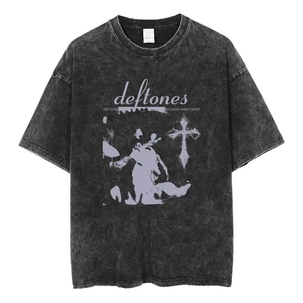 Y2K Wash and Age Vintage T-shirt Harajuku Hip Hop Hip Hop Metal Rock Music Album Cover T-shirt Cotton Short Sleeve Tee Men's Top